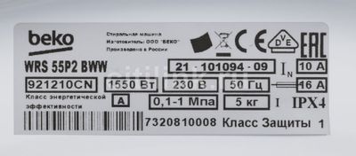 - Класс (стирка/отжим/энергопотребление): A/ C/ A-10%;