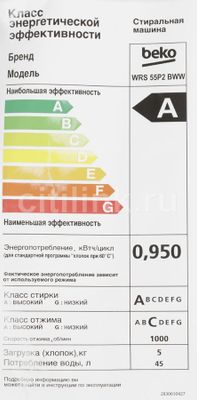 Стиральная машина узкая Beko WRS55P2BWW, с фронтальной загрузкой, 5кг, 1000об/мин