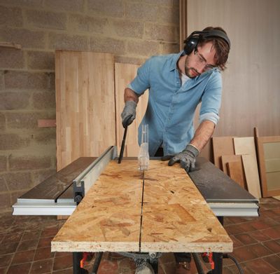 c. Расположите настольную пилу в хорошо освещенном и ровном месте, где вы сможете поддерживать хорошую опору и равновесие.