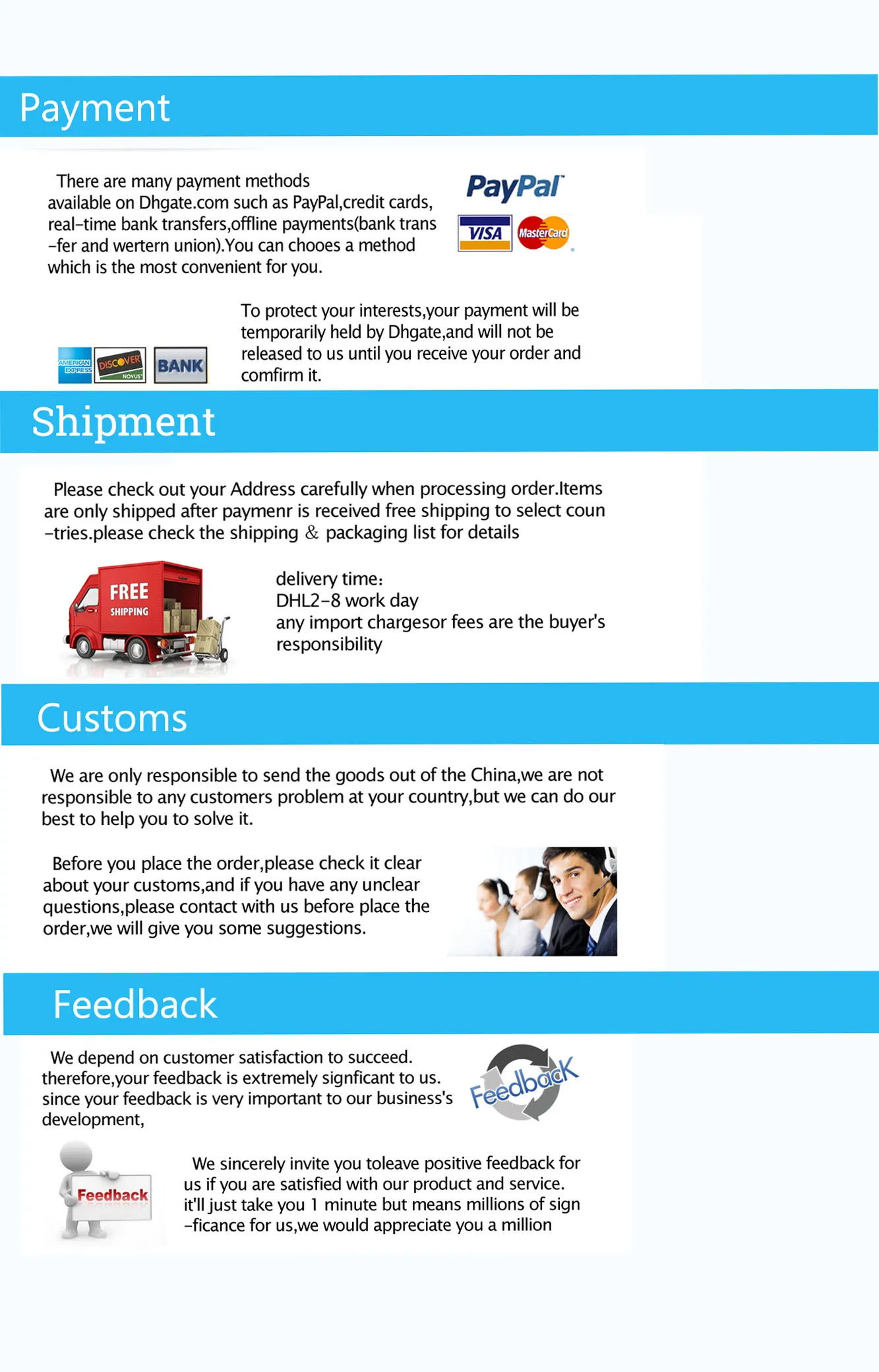 4. Если у вас возникнут проблемы, пожалуйста, свяжитесь с нами, а не открывайте спор. Мы постараемся помочь вам решить проблему.