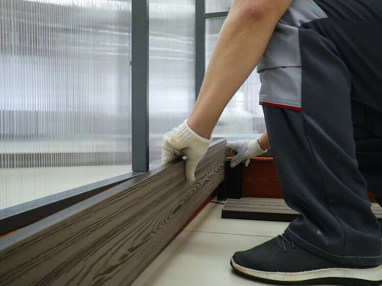 Планки плотно прижимают поликарбонат к вертикальной стенке.