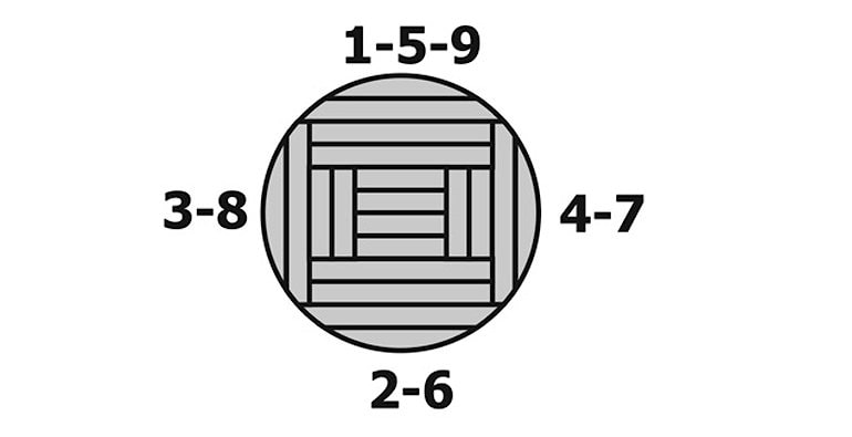 - Пиление по кругу. После первого распила бревно переворачивается на другую грань. Обычно практикуют пять переворотов. Способ позволяет производить распиловку бревна по размерам с минимальным количеством отходов. В качестве минуса такого способа можно выделить низкую скорость производства.