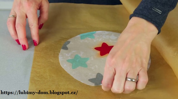 Сверху наложим кусок бумаги для выпечки и прогладим теплым утюгом
