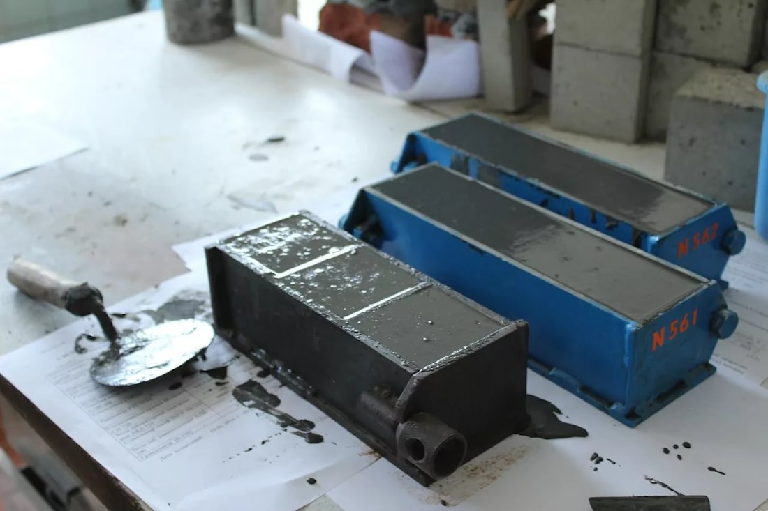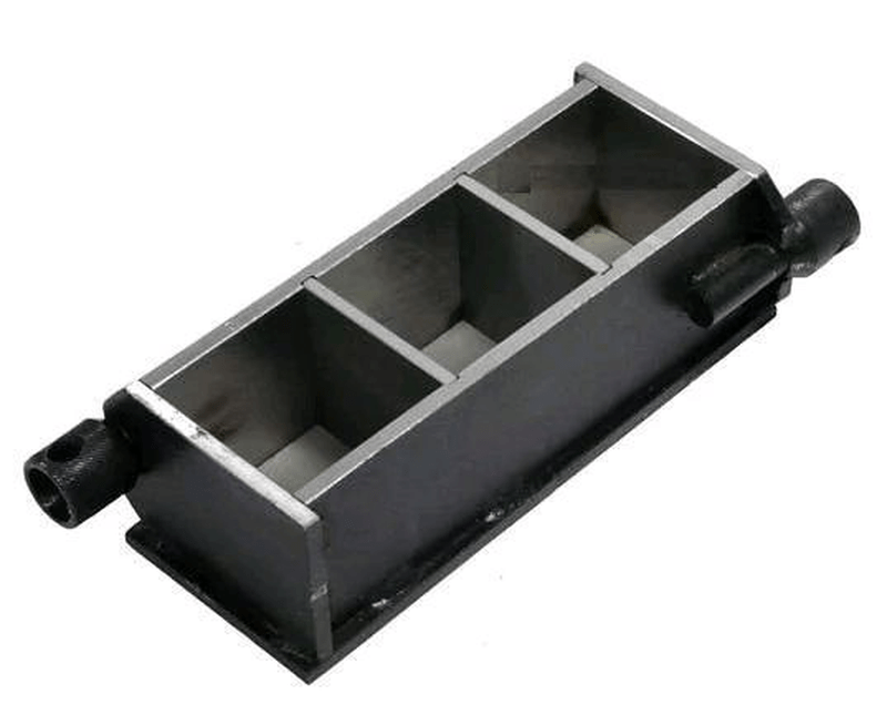 Изготавливаются образцы бетона путем заполнения смесью форм 3ФК100 – тройная форма куба 100x100x100мм.