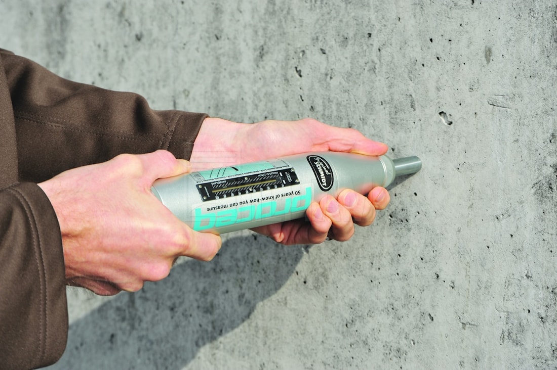 Проверяется с помощью измерителя прочности — Молоток Шмидта.