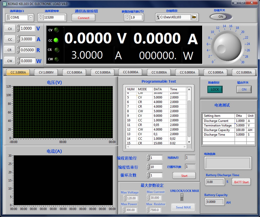 Модель KEL102 KEL103Вход Номинальная мощность 150 W 300 WНапряжение 0-120 в 0-120 вВ настоящее время 0-30A 0-30ACC режим диапазон 0-3A 0-30A 0-3A 0-30AРазрешение 0.1mA 1mA 0.1mA 1mAТочность ± (0.05% + 0.005% FS) ± (0.05% + 0.005% FS)Диапазон режимов CV 0-18 V 0-120 V 0-18 V 0-120 VРазрешение 0.1mV 1mVТочность ± (0.05% + 0.025% FS) ± (0.05% + 0.025% FS)CR режим диапазон 0,05 Ω-7,5 Ω 0,05 Ω-7.5K ΩРазрешение 16bit 16bitТочность 0.015% + 0,1 S 0.015% + 0,1 SДиапазон режима CW 150 Вт 300 ВтРазрешение 0,01 Вт 0,01 ВтТочность ± (0.1% + 0.1% FS) ± (0.1% + 0.1% FS)Наклон диапазон 0-3A 0-30A 0-3A 0-30AРост 0,0001-0.15A/us 0,001-1.5A/us 0,0001-0.15A/us 0,001-1.5A/usПадение 0,0001-0.15A/us 0,001-1.5A/us 0,0001-0.15A/us 0,001-1.5A/usДиапазон напряжения 0-18 в 0-120 в 0-18 в 0-120 вИзмерение Разрешение 0.1mV 1mV 0.1mV 1mVТочность ± (0.025% + 0.025% FS) ± (0.025% + 0.025% FS)Диапазoн тока 0-3A 0-30A 0-3A 0-30AИзмерение Разрешение 0.1mA 1mA 0.1mA 1mAТочность ± (0.05% + 0.05% FS) ± (0.05% + 0.05% FS)Диапазон мощности 300 Вт 1000 ВтРазрешение измерения 0,01 Вт 0,01 ВтТочность ± (0.1% + 0.1% FS) ± (0.1% + 0.1% FS)Защита от избыточной мощности 160 Вт 320 ВтЗащита от перегрузки по току 3.3A/33A 3.3A/33AЗащита от перенапряжения 125 V 125 VЗащита от перегрева 85 ° 85 °Вход сопротивление 150KΩ 150KΩВес и размеры (Ш * Г * В) 5,17 кг/107 мм * 215 мм * 386 ммАксессуары Руководство пользователя, шнур питания, программное обеспечение CD, USB кабель и кабель RS232Интерфейсы USB, RS232 и LAN