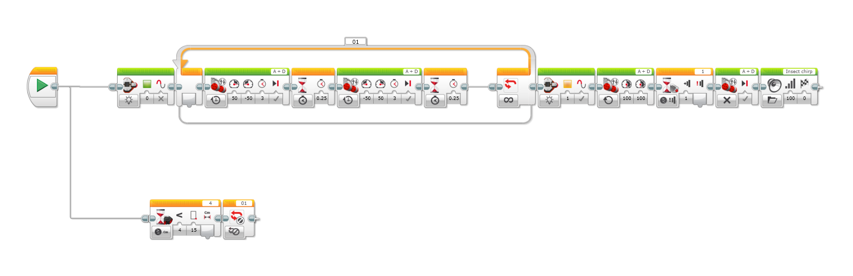 Конструкция робота простая и собрать его можно очень быстро. Инструкцию для сборки вы можете найти ниже. Я использовал набор LEGO Mindstorms Education EV3 (45544), при большом желании можно сделать аналогичного робота из домашней версии (31313), но тогда нужно будет менять программу.