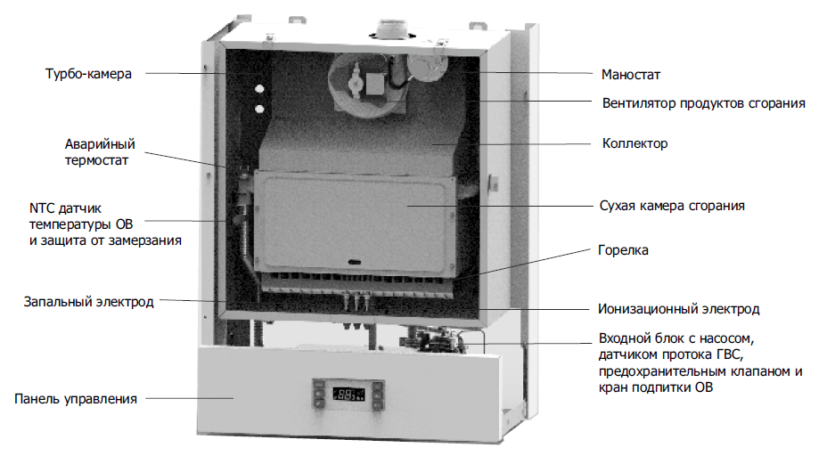 - Защита от перегрева бойлера. После прекращения подачи газа насос будет продолжать циркуляцию до допустимого охлаждения среды.