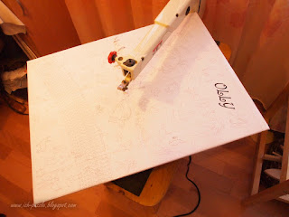 или же наклеить выкройку по всему размеру картинки, прикрепив выкройку только к обратной стороне пазла