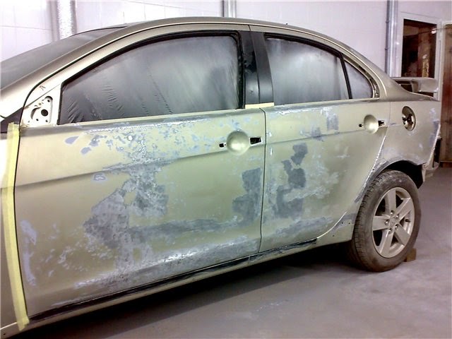 Сначала следует взять напильник с крупной насечкой для быстрого снятия лакокрасочного покрытия. При обнажении металла использовать напильник с мелкой насечкой. Если этого вовремя не сделать, толщина металла может недопустимо уменьшиться. Такой способ оказывается более эффективным по сравнению с вариантом водяного охлаждения. Ведь чаще всего из-за внутренних напряжений у возникшей вмятины края слегка приподнимаются, и, охлаждая водой, избавиться от этого весьма сложно. В то же время применение напильника позволяет выровнять материал и обеспечить его плавный переход к неповрежденному металлу. После этого остается только с помощью небольшого количества шпаклевки создать абсолютно ровную поверхность.