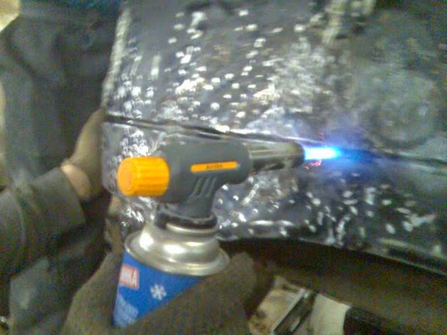 - Далее на прогретую поверхность быстро подается струя сжатого воздуха. Профессионалы чаще всего используют баллончики, заправленные сжиженным газом: (бутаном, пропаном или изобутаном).