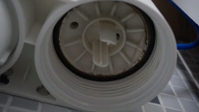 - Замена картриджей проводится поэтапно. Колбы откручивать прилагаемым приспособлением — круглым полипропиленовым ключом, фиксируя зубцы на рёбрах жёсткости колбы.