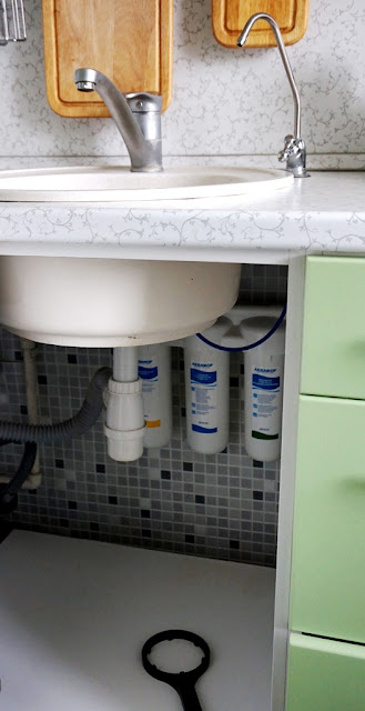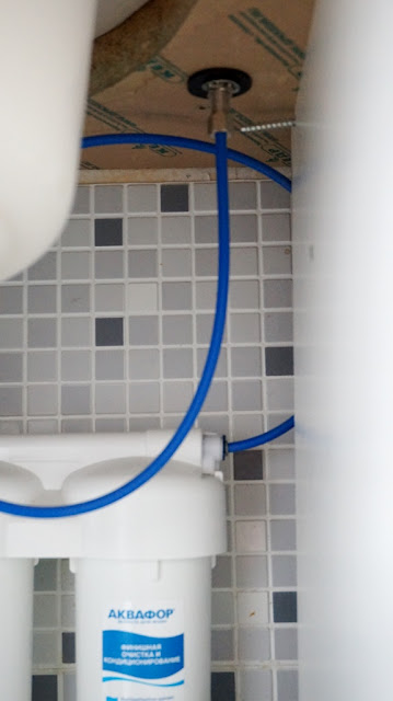Система фильтров отлично вписалась в пространство под раковиной на кухне.