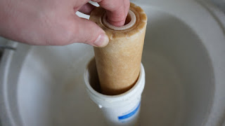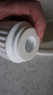 - Отверните крышку картриджа и пересыпьте ионообменную смолу в емкость объемом от 2 л.